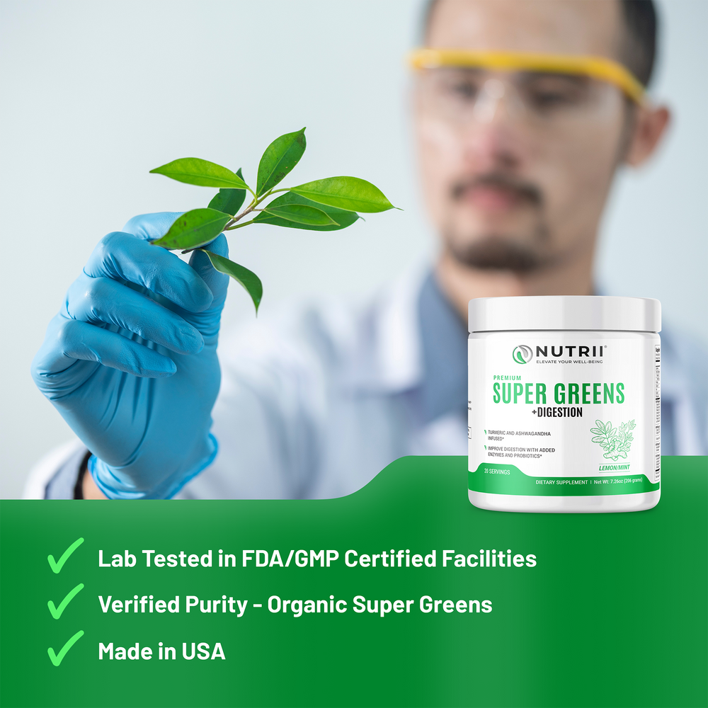 That’s why we developed Nutrii Super Greens + Digestion, an all-natural and organic daily supplement that contains premium probiotics, healthy enzymes, ancient medicinal herbs, and all the ingredients you’ll need to maintain your digestive health and jumpstart your metabolism.